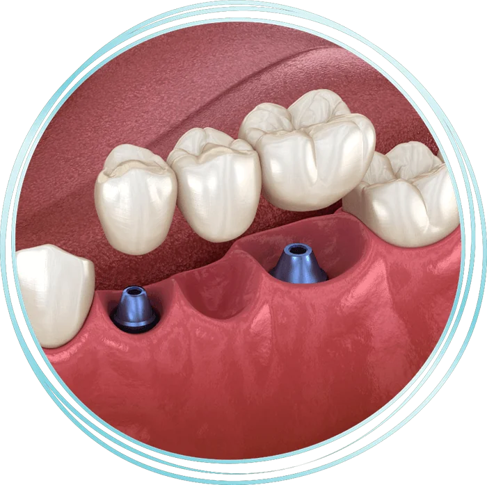 Implant Placement: A titanium implant post is surgically placed into your jawbone under local anesthesia or sedation to ensure a pain-free experience. This post acts as the root of your new tooth.