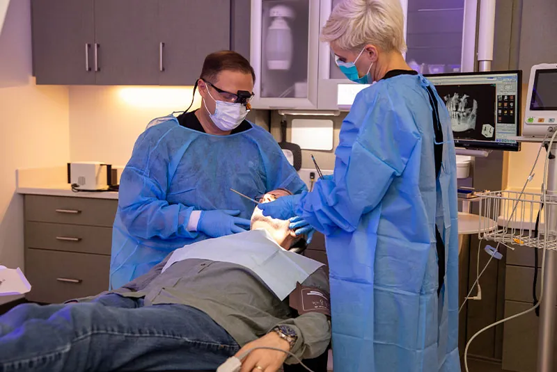 This surgical procedure is performed to gain access to diseased root and bone areas, remove bacteria and infected gum tissue and reduce pockets. After the local anesthetic and optional sedation have taken effect, our dentist makes an incision at your gumline and then folds back the gums to clean out bacteria. If any of the exposed bone is damaged or shaped irregularly, smoothing it out reduces the risk of bacteria growth causing reinfection. If your bone is significantly damaged, we offer plasma-rich growth factors and fibrin to enhance the healing process. Then your gums are sutured back into place and covered with dental dressing.
